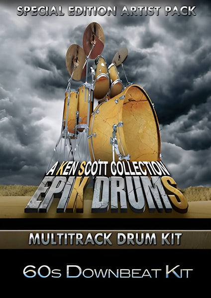 From EpiK DrumS – A Ken Scott Collection the 60s Downbeat kit is an authentic drum kit in the style of Ringo Starr and The Beatles. Complete with the distinct sound of tea towels over the toms and snare this vintage character kit has a deadened sound similar to the drums on “Magical Mystery Tour” and “The White Album” both of which Ken Scott participate in the recording of with The Beatles back in the day. With classic tube mics and vintage analog path Ken used the same recording techniques he used in the 60s recording classics like “Hey Jude” and “I Am The Walrus”. The drum kit is an Oyster Pearl Ludwig® Downbeat kit just like the one Ringo used with The Beatles. A simple 3 piece kit with a classic sound. Perfect for anyone looking for an authentic retro drum sound with this type of character. *Customer must already own FXpansions`s BFD2 or BFD3.