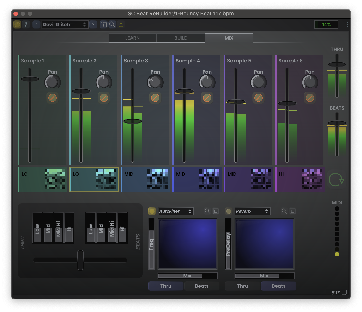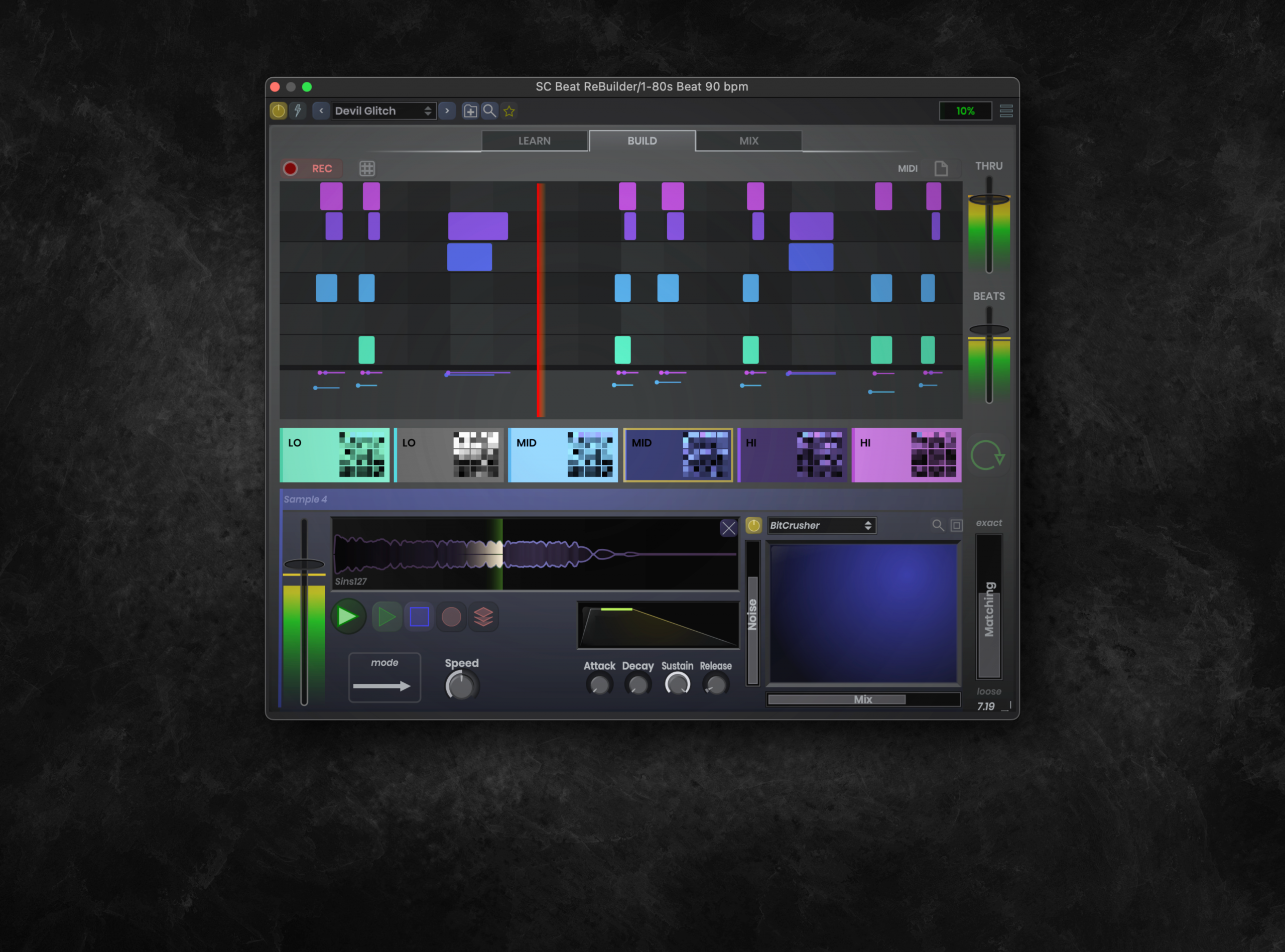 Grab beats out of thin air! This plugin deciphers a beat and adds layers of sound on it. You can use this to replace or augment parts of a beat, or as inspiration for new MIDI patterns and audio loops. Beat ReBuilder outputs MIDI and audio, and can render MIDI clips, giving you maximum flexibility.