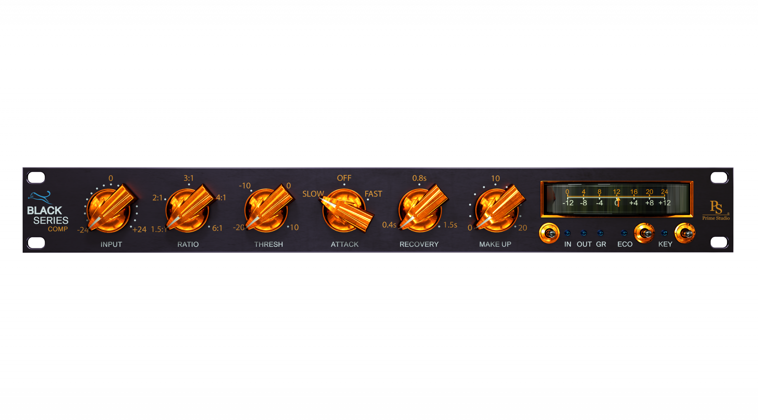 Prime Studio® Black Series CompressorA classical solid state compressor modelled after a famous vintage studio device out of the sixties offering ratio, threshold, attack, recovery and make up functionality. Light on CPU usage Prime Studio® Black Series Compressor serves you with highest sound quality. Want to get even lighter on CPU usage use the ECO mode which deactivates the harmonic preamp distortion sound of the input stage. On board is a switchable meter for input level, output level and gain reduction control. Use the key switch to use sidechain functionality to fine tune the compression effect (AAX version only).
