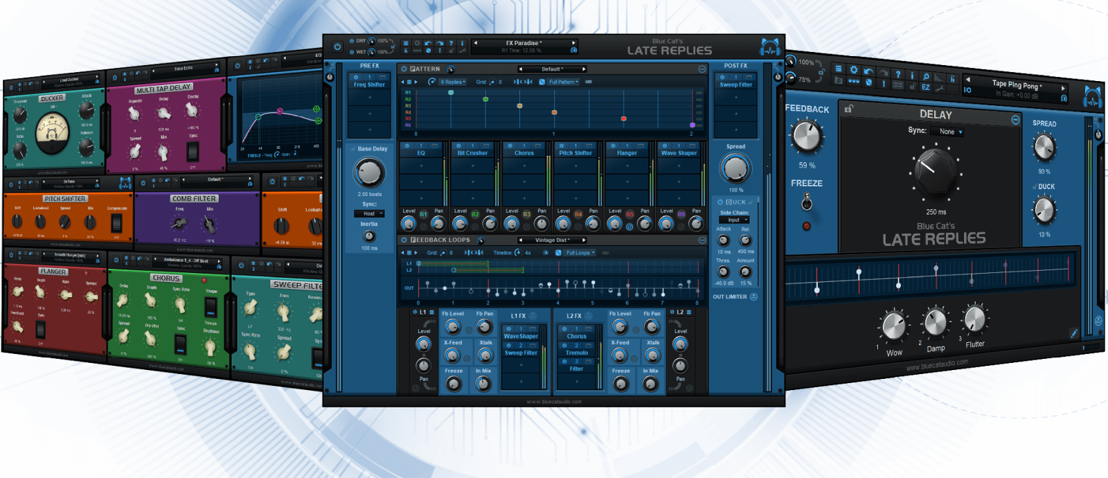 Late Replies is a delay plugin that offers unique routing and modulation capabilities. It features multiple delay types, from classic echoes to advanced modulated delays. The plugin includes flexible modulation options, allowing for intricate sound design. Its easy-to-use interface lets you craft complex delay effects with ease. Ideal for both creative sound design and traditional delay needs, Late Replies offers complete control over timing and modulation.