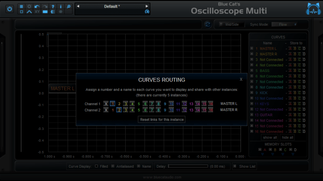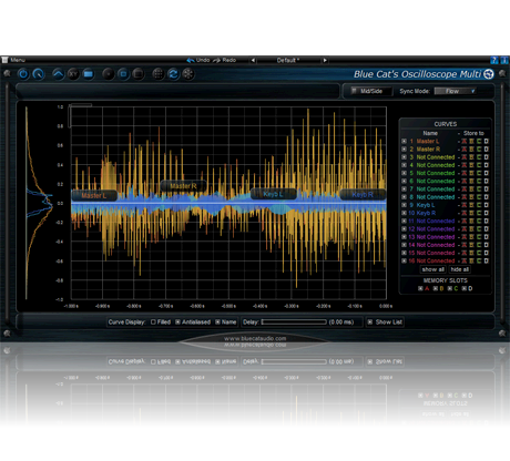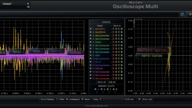 Blue Cat`s Oscilloscope Multi is a unique multiple track real time waveform renderer comparator: it lets you visualize the content of several audio tracks on the same screen compare them thanks to its X-Y view. The plugin offers stereo mid-side channels waveform extraction as well as several synchronization modes. The zooming precise measurement capabilities let you analyze the waveforms in details, the XY phase scope view will help you track phase issues within an effect chain while recording with multiple microphones.