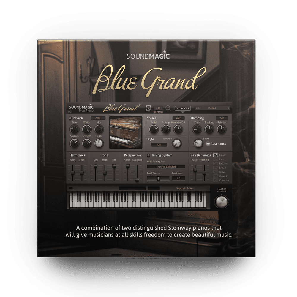 Blue Grand is a dynamic combination of two distinguished Steinway Grand Pianos combined into one amazing and affordable price. This gives musicians of all skill levels more freedom to create beautiful music and unmatched artistry all their own. Blue Grand is not merely a piano instrument, but also a powerful songwriting tool. Blue Grand embodies over 100 piano loops designed by professional composers that cover different styles of music. These will make the whole process easier for the musicians as they can be inspired by the pre-recorded creative music pieces and add extra layers to their music. This will have an immediate result on most music styles. What is more, we also provide different BPM versions for each loop. With this powerful tool, even a starting musician can write professional piano tracks without spending too much time learning composing.The dynamic of a piano is the most decisive aspects of its sound quality. Around 10 years ago, Sound Magic had already applied a True Piano Dynamic system which can represent piano dynamic in the most efficient way. And in years, we keep improving the performance. A True Piano Dynamic means the piano will have different dynamics from low notes to high notes; usually, high notes will have more dynamic range. Now, our True Piano dynamic system enables every note to have its unique dynamic range, and it can be fully controlled by knobs.Blue Grand is powered by Hybrid Modeling technology and HD Velocity Layer 3 with HDR (High Dynamic Range) technology (support up to 65,536 velocity layers) providing a natural boost to expressive power that can be felt with every strike of the keys. Along with the new Neo Piano engine, which achieves 400 times more variations than a traditional sample engine, every note played is unique, creates vivid sound representation, and strikes a rich, accurate tone even with small movement. In essence, it’s an instrument with a musical soul instead of a machine feel. What is more, in this new version we allow you to experience this in a system which only supports 127 velocity layers by applying HDR. This makes this technology can be used without any cost upgrading your MIDI system.When you play a strong staccato on the piano, you will notice that the sound in its release phase is different from the usual sound. This difference adds extra variety to the final sound of the piano – it contributes to the vividness or expressiveness of the piano sound.To accurately reproduce this staccato sound, we added a specially sampled staccato instrument that could load nad use in your music project.Resonances play an important role in a piano’s sound. It adds extra beauty to the overall sound. Reality dictates that every grand piano’s sizeable soundboard reflects sound that resonates in conjunction with the wooden body of the instrument itself. Indeed, it is this continuous process that makes every note played sound so unique.Ultimately, in order to simulate this behavior, Sound Magic captured multi-angled IRs (Impulse Responses) from the soundboard, and then used modelling technology to convert those IRs into Multi-Dimensional Resonance algorithms. The result? An amazingly true-to-life concert hall sound readily available at anyone’s fingertips!Sympathetic Resonance happens when Harmonics are heard in keys related to keys that are struck. It is an interaction between different strings and adds extra color to every note’s sound. It makes them sound unique so that the audience can enjoy listening.Sustain Resonance and String Resonance can be heard when sustain pedals are pressed. Although they are subtle sometimes, as a part of Piano resonance, Our Neo Piano Engine has the ability to represent different resonances in the right way, and provide controls on their amount and behavior.