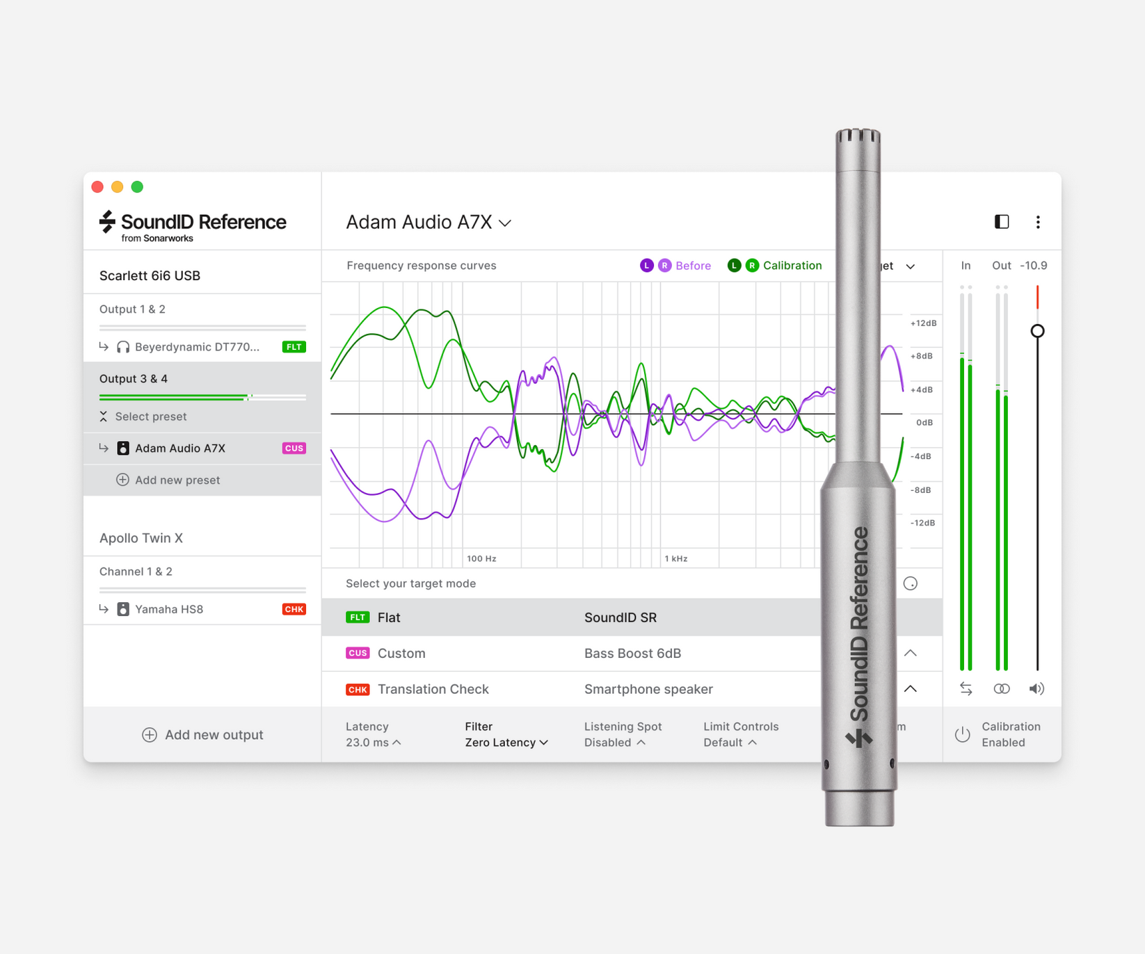 A complete calibration solution for speakers and headphones, bundled with a measurement mic to ensure consistent and reliable audio monitoring.