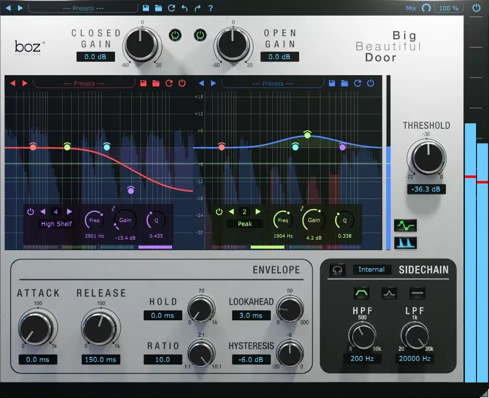 Tweak not only volume but also tonal balance above and below the threshold with stunning precision and fluidity. From surgical noise gating to intelligent automated EQ; from seamless drum de-bleeding to mind-blowing frequency shaping; Big Beautiful Door doesn’t just gate—it unleashes boundless creative potential. The future of gating is here, and it’s yours for the taking.