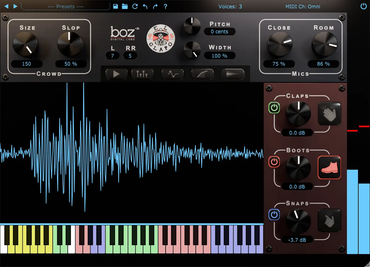 Whether you need a crisp solo clap, stomp, or snap; a stadium full of energy, or anything in between, El Clapo delivers. Packed with 100% authentic claps, stomps, and snaps, El Clapo gives you instant access to a massive range of percussive textures for your productions.Dial in the perfect crowd size—from one person to an entire arena—and tweak away with three mic positions for unmatched realism. Fine-tune your mix with a 6-band EQ, compressor, and reverb, then bring your beats to life using the built-in step sequencer or MIDI control.