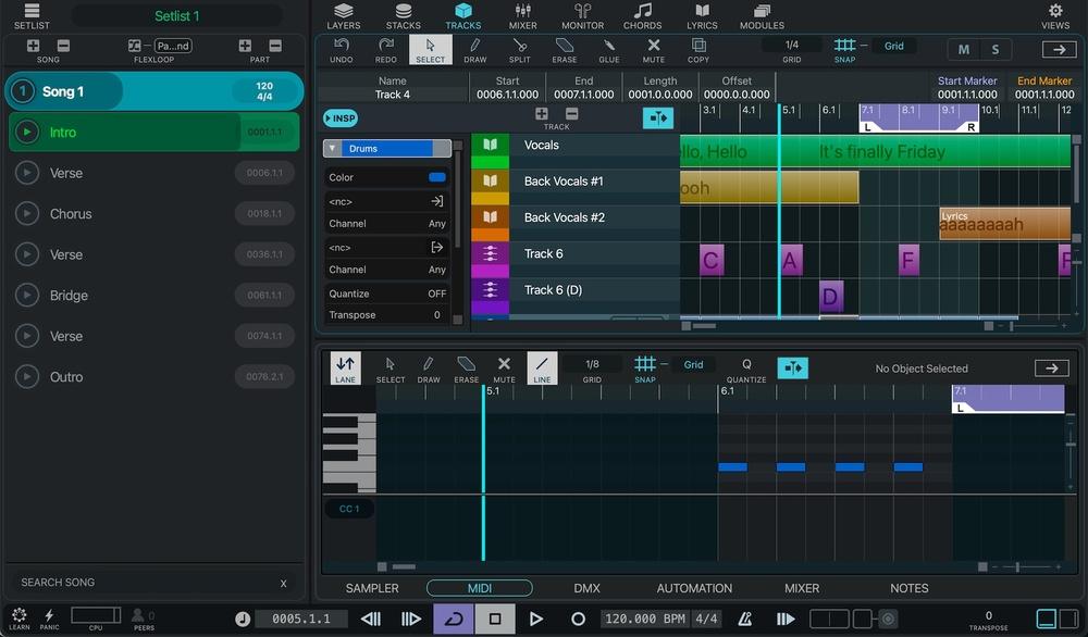 Make your live easier with VST Live 3, the ultimate live performance system. From living room concerts and solo shows in clubs, up to big stage productions and live performance streaming, rock solid VST Live 3 is designed for musicians who want to put on a great show, including sound, lights, video, and cameras. Prepare a complete show in VST Live 3 by incorporating backing instruments, vocals, text and chord symbols, MIDI tracks, lighting effects, and cameras – all perfectly synchronized to each song in your set list. If you are working with Cubase or Nuendo, you can even import your project file directly. At the same time, VST Live 3 is a complete live camera production environment and allows for manual or pre-programmed camera switching. This lets you define precise moments in your song when, for example, the camera automatically switches to a close-up of the drums or to the guitarist for their solo.