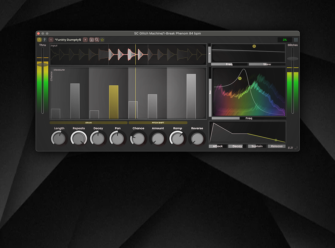 Glitch Machine is a simple plugin for quickly and easily mixing up your beats. Whether you’re trying to spice up a boring beat, or completely change its tone, this plugin offers several controls to tune it to your tastes.