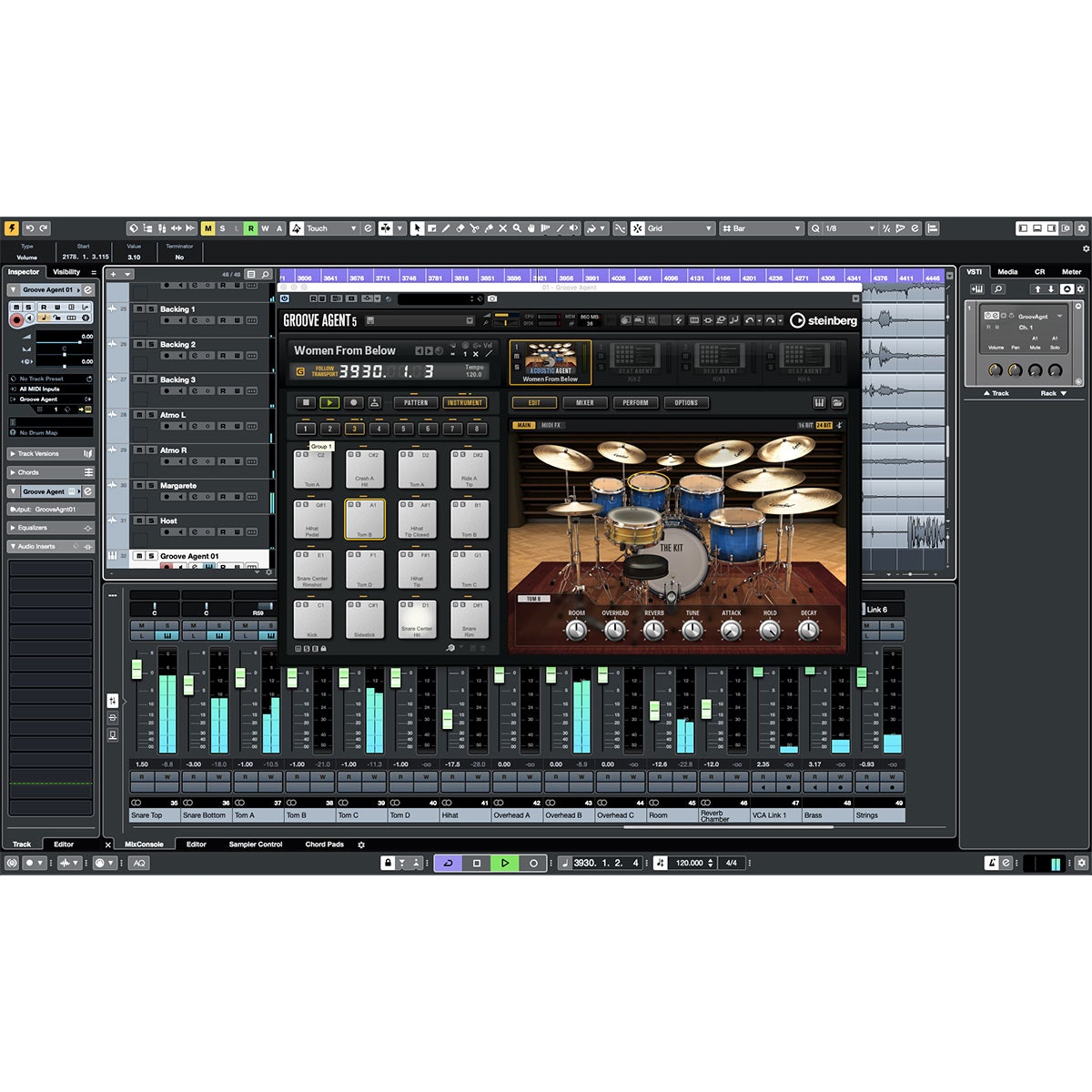 Groove Agent 5 is the ultimate drum studio virtual drumming instrument for producers songwriters working in any modern musical style. This unique instrument combines three specialist rhythm modules in one: craft dazzlingly authentic drum tracks, produce dancefloor-filling beats design slinky percussive grooves with a dedicated Agent for each task; combine up to four Agents for a new experience in rhythm creation. Groove Agent 5 includes a huge sound library of over 22,000 samples more than 3,800 patterns, a vast array of specialist editing tools, Style Player, the handy Jam mode, full integrated mixing board much, much more.