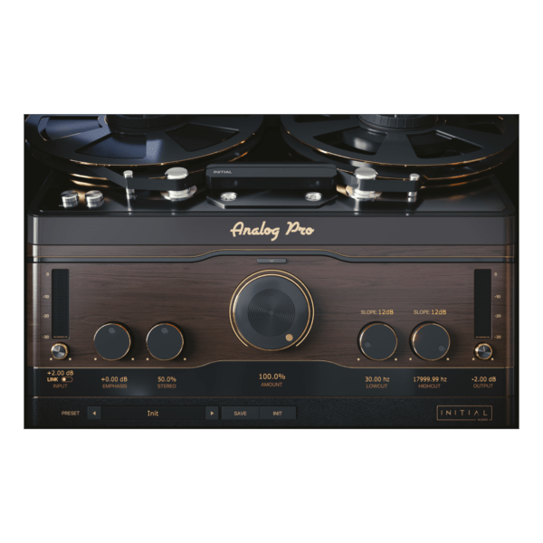 Analog Pro brings life to your digital audio by simulating the way Analog hardware such as tape machines, valves and vinyl turntables warm up and saturate your audio. We recreated the imperfections of playing back audio from a Tape or a turntable via the Wow and Flutter controls. Analog Pro has a variety of user adjustable controls including Noise Level, Noise Type, Impulse Type, Impulse Mix, Emphasis, Stereo, Lowcut, Highcut, Wow, Flutter and Amount, giving plenty of scope for the user to adjust the sound to their liking. Analog Pro sounds great on real instruments such as pianos and brass and can really make your instruments stand out in your mix, sounding like they are being played back from a Tape or Turntable. Analog Pro comes with an easy to use and resizable interface, use the Amount knob to control how much Analog Pro affects the signal.