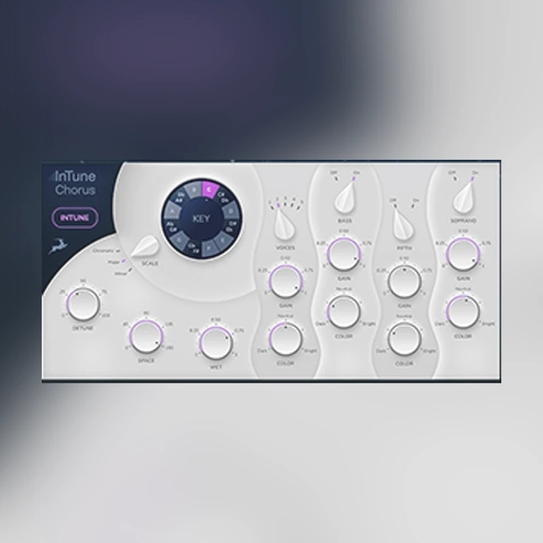 Harmony is an accompanying vocal generator plugin, capable of adding 2, 3, or 4 voice harmony to a vocal line in real-time. Adjust key and scale and add pitch correction with the InTune button, which utilizes the same correction algorithm as the Performer and Chorus plugins. The intuitive user interface enables the generated voices to be arranged across the stereo panorama with the Space control, while the timbral differences between the lowest and the highest voices can be adjusted with the Color control being moved from Neutral to Deep.