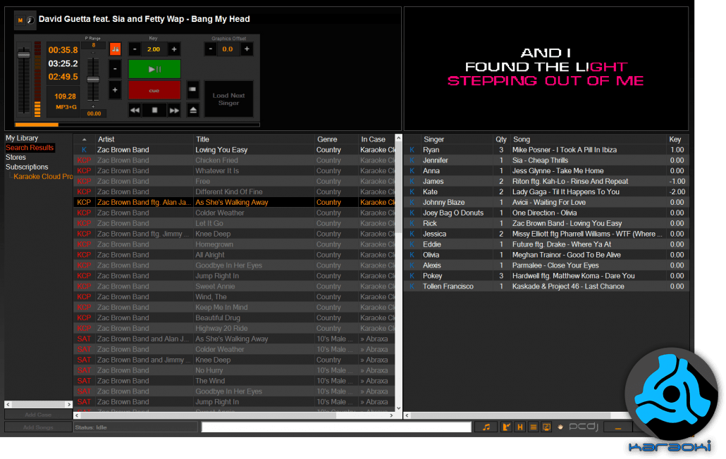 PCDJ KARAOKI is professional karaoke software designed for the working KJ to karaoke enthusiast. Use with MP3+G, karaoke Zip files, most video formats to display clear on-screen lyrics. Complete with key control, on-deck singers list, news ticker much more. Enhance your show with this simple yet powerful karaoke software player!- Supports MP3+G, Zipped MP3+G (zip 2.0), WAV+G (Not Zipped) most Video file formats- Secondary Lyrics Uutput (full screen lyrics to secondary video display)- Karaoki Cloud Pro subscription integration – Built-in Karaoke Locker.com song store (buy download karaoke songs on-the-fly)- Key-control (half steps in semi-tones)- Robust Library with Search (click anywhere on screen type!)- True Singer Rotation Solo-Singer Modes- Next 5 singers displayed on singer screen (configurable)- Drag ‘n’ Drop loading Rotation re-ordering.- Automatically delete singer from rotation after 20 seconds singing (optional)- Singer Song History – Review History Button (remembers key adjustments)- Scan Karaoke Tracks using MP3 Tags File Naming Conventions (all popular versions supported)- Case printer. Print out your songbooks direct from Karaoki ( Export to TSV file)- Back-Ground Music Player (Play regular buffer music between singers/sets)- DiskID columns in case search lists- News Ticker (scrolling ticker on screen)- Singer screen auto sizes- ‘Control-Key’ keyboard shortcuts- Auto Play (Auto Karaoke)- Graphic / Audio Offset- ‘New Show’ option on rotation menu, this clears the rotation, history singer lists but not singer database.- DE-multiplexer with singer coach control- The ability to change the singers list color on screen 2- ‘Drunk-Lock’ feature (lock screen)- ‘Times Up’ counter to the singer DB.- Instant songs sung review, clicking on the player song shows a list of all songs that have been loaded into the player for the current session- Configurable menu colors- Hide / Show case Columns in Case search Lists.- Import m3u playlists.
