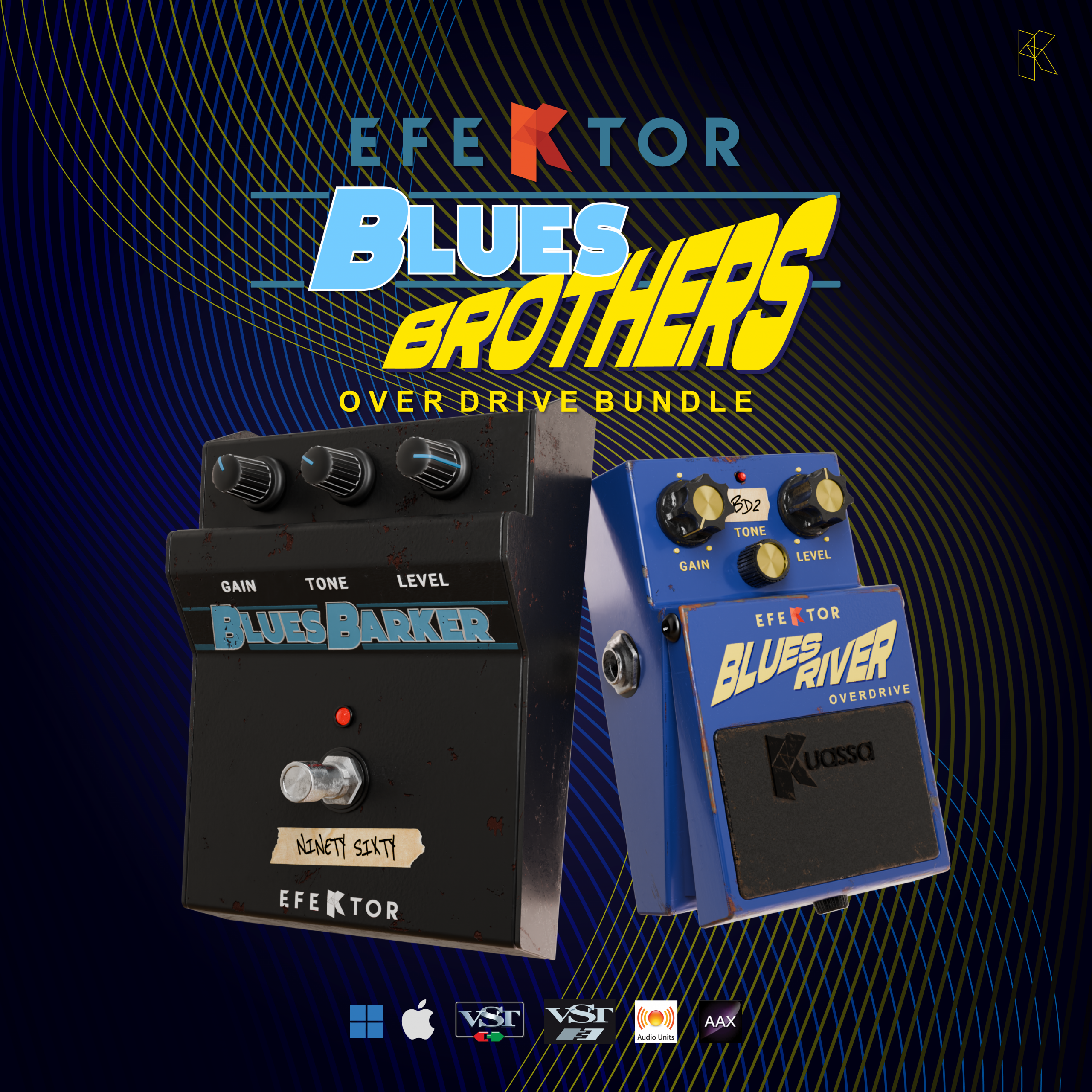 The Efektor Blues Brother Bundle combines the soulful saturation of Efektor Blues River with the rich British-style breakup of Efektor Blues Barker. Both plugins are modeled using Kuassa’s latest analog modeling technology and feature 10 different circuit types based on popular real-world mods and iterations of the original pedals and amps.Whether you’re looking for subtle boost, bluesy overdrive, or classic rock crunch, this bundle delivers a full range of touch-sensitive tones. Designed for clarity and feel, both plugins preserve your guitar’s natural voice and respond dynamically to your playing.Each plugin includes a dry/wet mix control, 8x oversampling, a resizable interface, and is available both as a standalone plug-in and a module within Amplifikation 360.