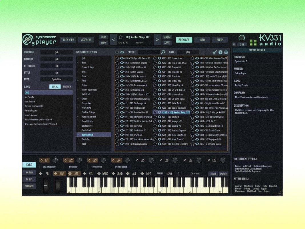 SynthMaster Player is a simplified version of SynthMaster targeted at musicians who use presets rather than create their own during music production.