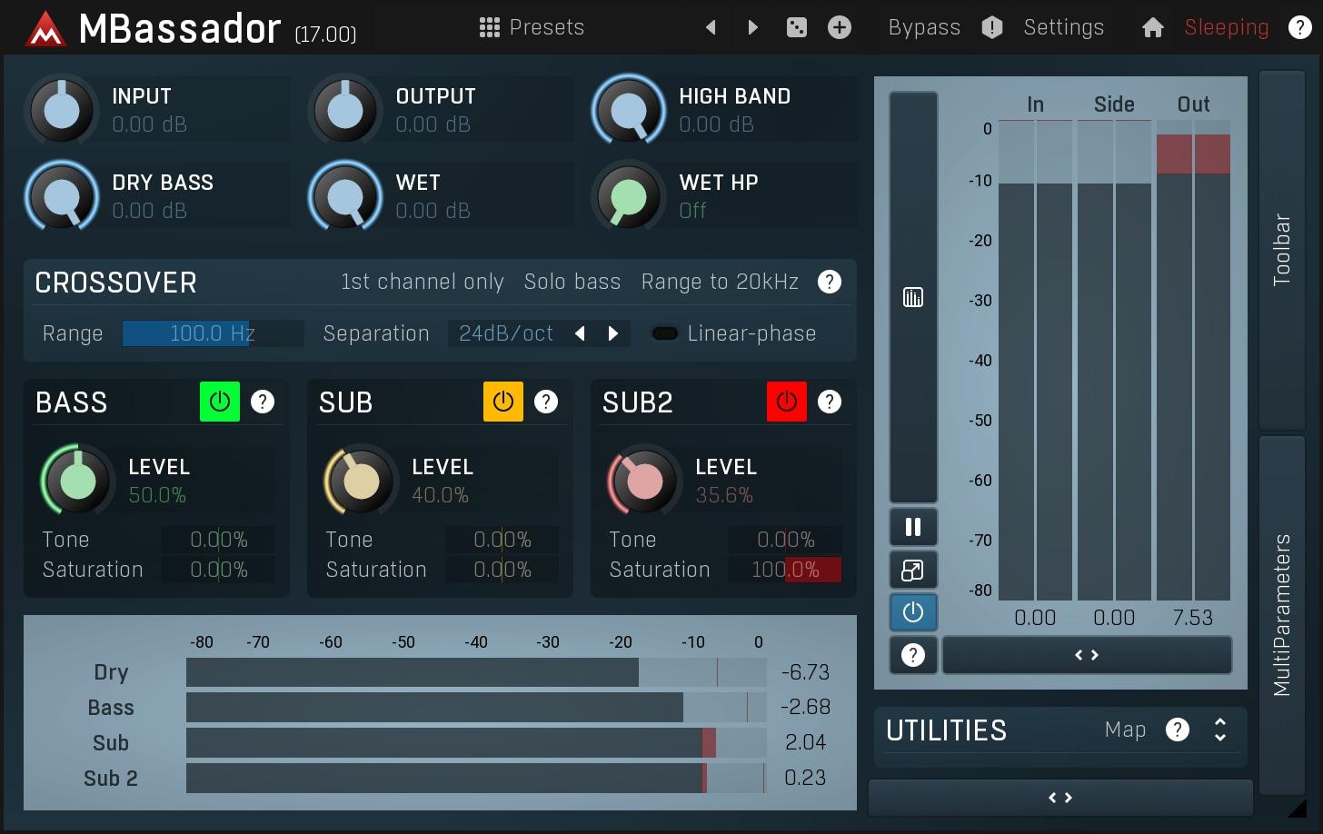 MBassador is a powerful tool for enhancing low-end content, generating rich subharmonics and boosting bass frequencies. Its advanced algorithms ensure tight and controlled low-end that translates well across systems. You can adjust the balance of sub and harmonics, tailoring the bass to fit your mix perfectly. It’s especially useful for electronic music, hip-hop, or any genre requiring impactful low frequencies. With MBassador, your bass will sound fuller, deeper, and more defined.