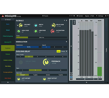 MDelayMB allows you to apply delay effects separately to different frequency bands, enabling intricate and dynamic delay processing. With extensive modulation options, it’s perfect for sound design, mixing, and creative applications.