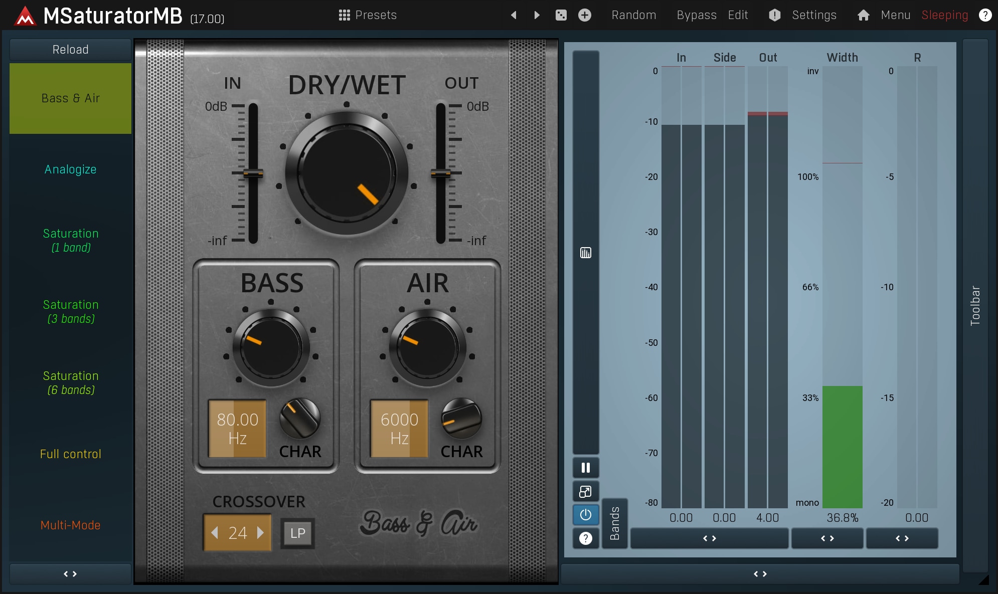 MSaturatorMB provides multiband saturation, allowing you to target specific frequency ranges for detailed harmonic enhancement. Each band offers independent control over saturation type and intensity, ensuring flexibility in shaping your sound. Use it to add warmth, color, or punch to individual tracks or full mixes. Its advanced multiband processing ensures clarity and balance, even with heavy saturation. Perfect for mixing, mastering, or creative sound design, MSaturatorMB adapts to any audio task.