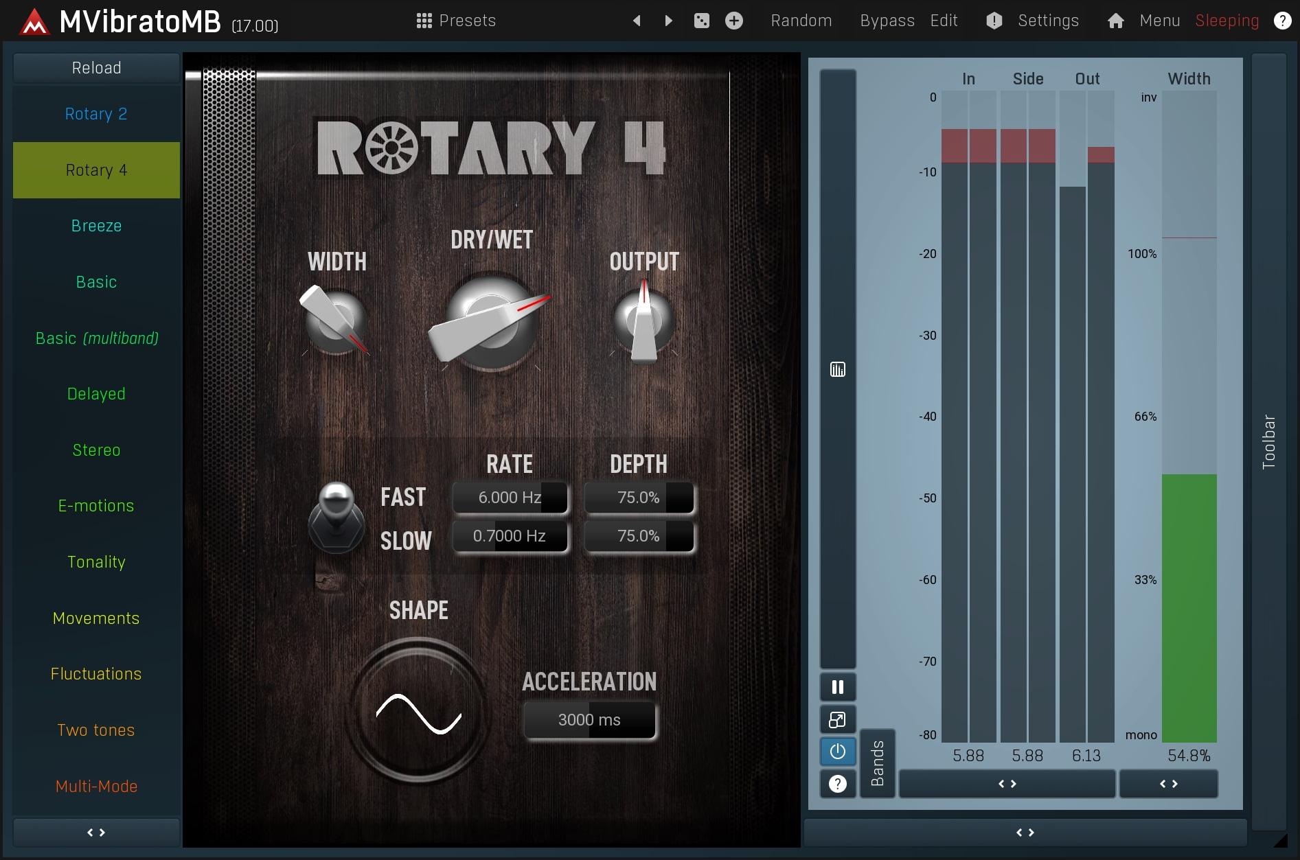 MVibratoMB offers multiband vibrato effects, allowing precise pitch modulation across different frequency ranges. Each band provides independent control over modulation speed and depth, enabling creative sound design and dynamic movement. Use it to add subtle pitch variation, dramatic wobbles, or experimental detuning to your audio. The plugin’s multiband processing ensures balance and clarity, even with intense modulation. MVibratoMB is an excellent tool for adding unique, expressive character to your tracks.