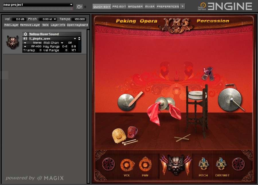 Drum percussion instruments used in Chinese Opera. After the success of Gu Zheng, Peking Opera Percussion is the second virtual instrument of our Chinese developer team, who specialized on virtually reproducing traditional Chinese instruments with great passion. Engine Player license included!