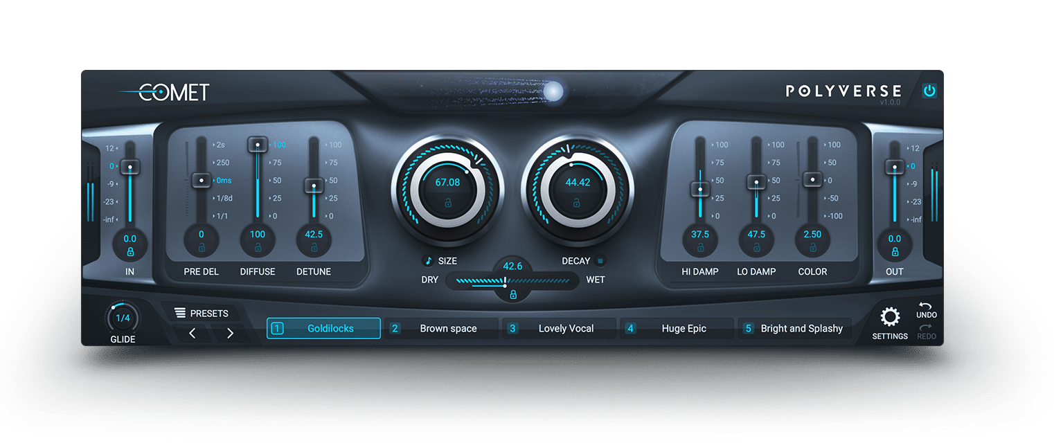 Comet is a reverb plugin renowned for its unparalleled lushness and versatility. It allows you to envelop your sound in breathtaking textures with unbelievable clarity. Comet’s unique preset morphing capabilities enable real-time transitions between different reverb settings, offering dynamic and evolving spatial effects. Whether you’re aiming for subtle ambiance or vast, immersive environments, Comet provides the tools to achieve your desired reverb characteristics.