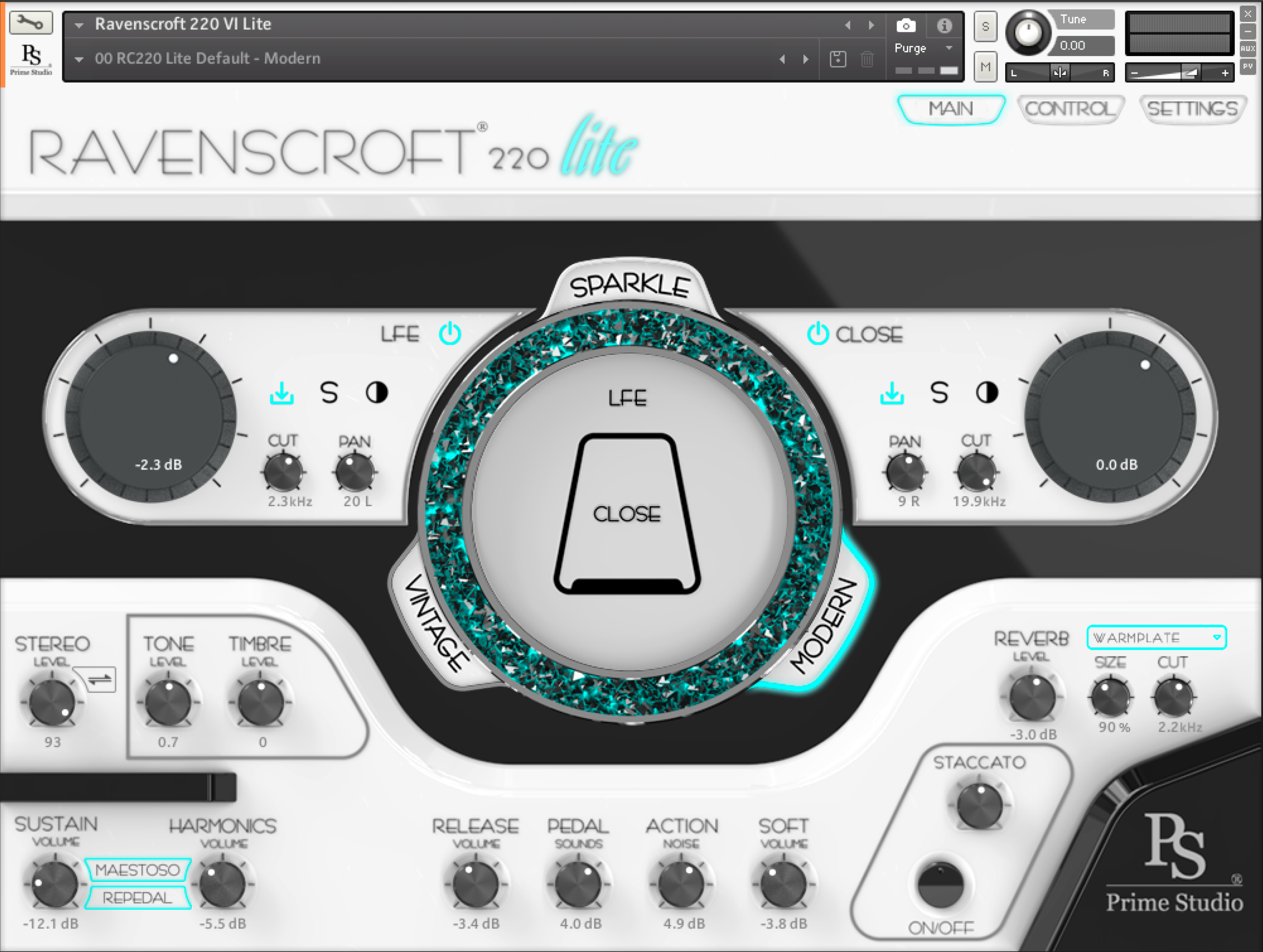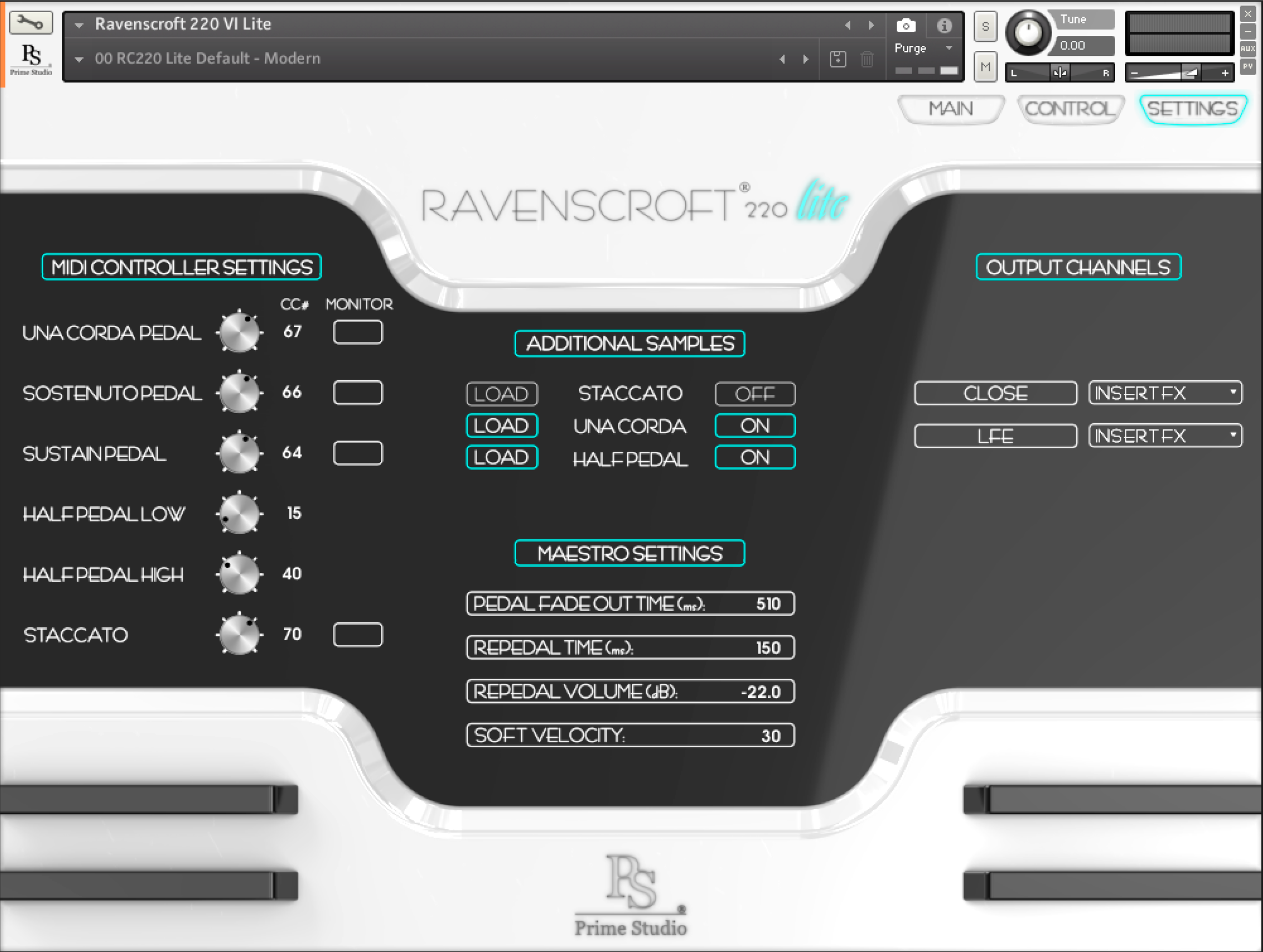 The Ravenscroft 220 „Lite“. Pristine in quality, lite data consumption. Two fully sampled sound characteristics, based on vintage Neve 31102 and modern AMS Neve 1081R microphone preamps. Two microphone positions to mix your favorite piano sound. Play it like a real grand piano by enjoying sustain pedal samples, una corda samples, different sustaining release samples, Maestoso sustain pedal functionality, harmonic resonances, action and pedal sounds, as well as staccato sounds.