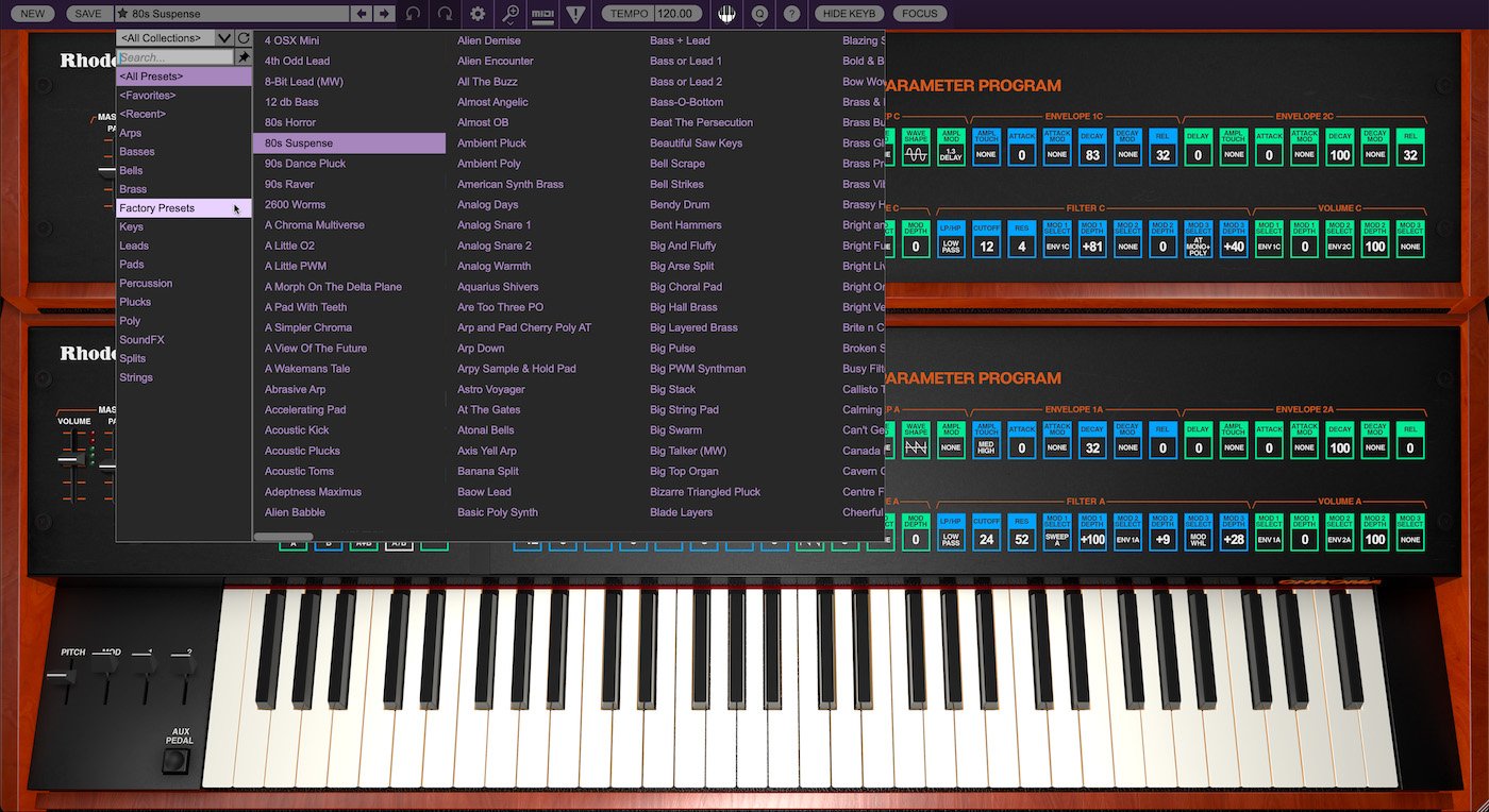 The Rhodes Chroma by Cherry Audio synthesizer is a virtual instrument that brings back the spirit and sounds of the iconic Rhodes Chroma polyphonic analog synthesizer from 1982 with the utmost accuracy. Originally released by Cherry Audio in May 2024, the Rhodes Chroma plug-in by Cherry Audio has now been rebranded through a collaboration with Rhodes® Music. This rebranding marks a new chapter in the synthesizer’s legacy, aligning the product with its historical roots under the Rhodes name. The plug-in remains a faithful recreation of the original 1980s Rhodes Chroma, enhanced with modern features that make it accessible to today’s musicians and producers, offering them the chance to experience one of the most iconic synthesizers in music history.