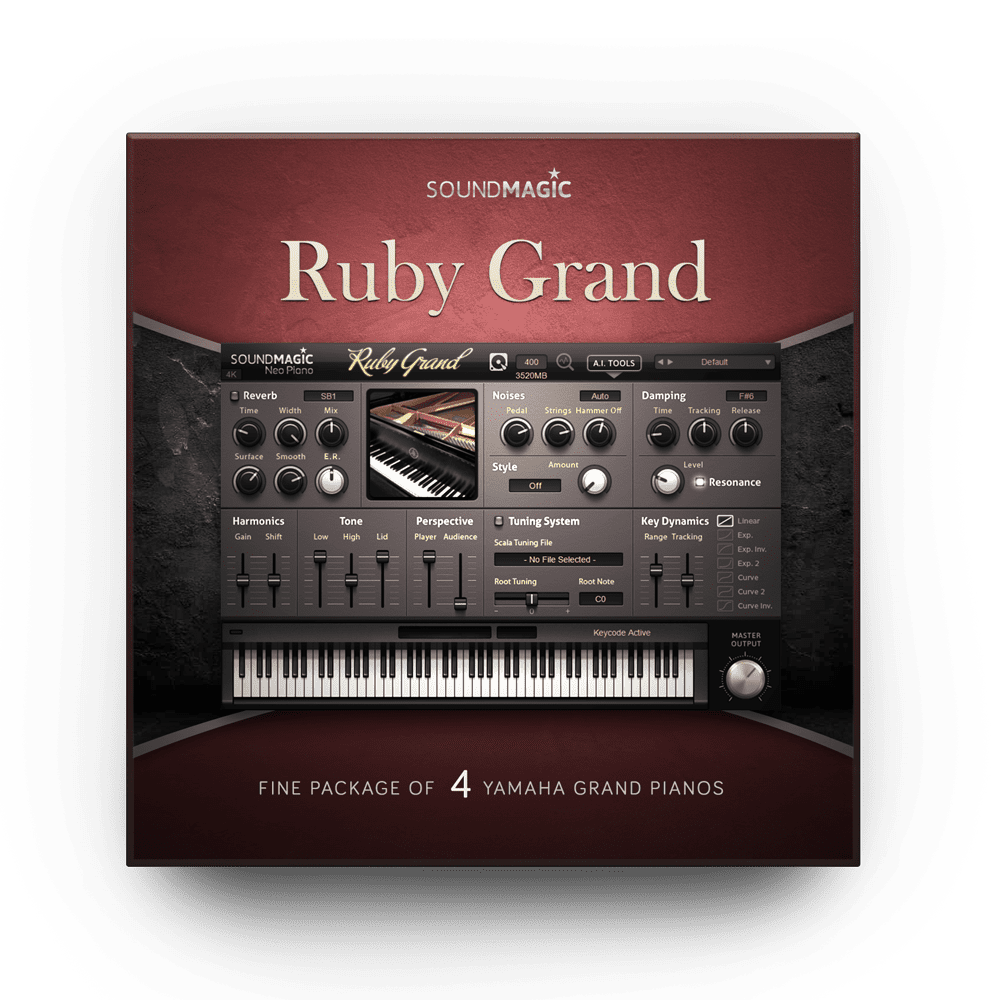Ruby Grand is a dynamic combination of four distinguished Yamaha Grand Pianos combined into one amazing and affordable price. This gives musicians of all skill levels more freedom to create beautiful music and unmatched artistry all their own.The dynamic of a piano is the most decisive aspects of its sound quality. Around 10 years ago, Sound Magic had already applied a True Piano Dynamic system which can represent piano dynamic in the most efficient way. And in years, we keep improving the performance. A True Piano Dynamic means the piano will have different dynamics from low notes to high notes; usually, high notes will have more dynamic range. Now, our True Piano dynamic system enables every note to have its unique dynamic range, and it can be fully controlled by knobs.Ruby Grand is powered by Hybrid Modeling technology and HD Velocity Layer 3 with HDR (High Dynamic Range) technology (support up to 65,536 velocity layers) providing a natural boost to expressive power that can be felt with every strike of the keys. Along with the new Neo Piano engine, which achieves 400 times more variations than a traditional sample engine, every note played is unique, creates vivid sound representation, and strikes a rich, accurate tone even with small movement. In essence, it’s an instrument with a musical soul instead of a machine feel. What is more, in this new version we allow you to experience this in a system which only supports 127 velocity layers by applying HDR. This makes this technology can be used without any cost upgrading your MIDI system.When you play a strong staccato on the piano, you will notice that the sound in its release phase is different from the usual sound. This difference adds extra variety to the final sound of the piano – it contributes to the vividness or expressiveness of the piano sound.Resonances play an important role in a piano’s sound. It adds extra beauty to the overall sound. Reality dictates that every grand piano’s sizeable soundboa