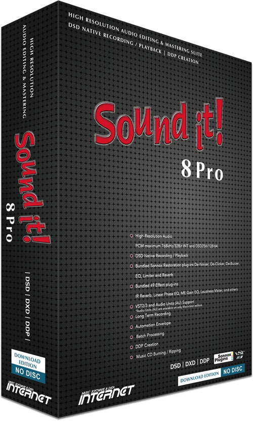 Sound it! 8 Pro for PCMultifunctional and versatile audio editing, mastering and processing software. High resolution audio support, bundled effects and batch processing capability.