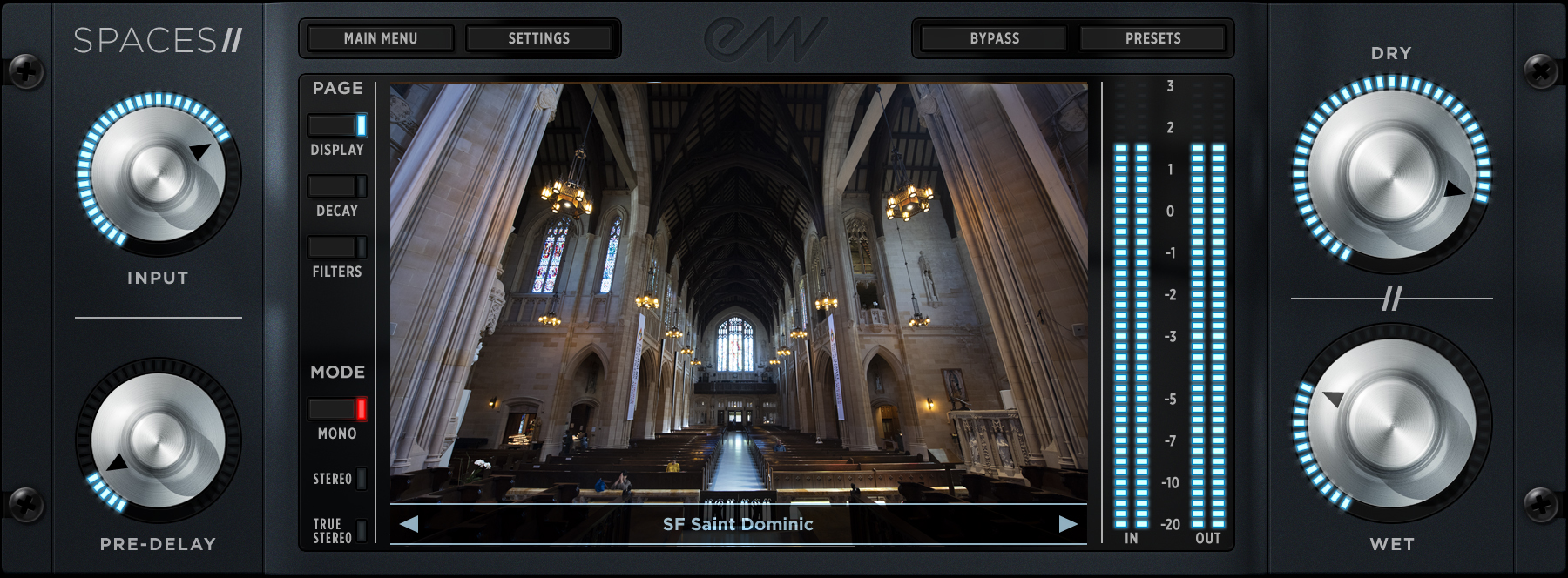 The Sequel to the Ultimate 24-bit True Stereo Convolution Reverb is coming July 23rdSPACES II from EASTWEST is the highly-anticipated sequel to Spaces, the top-selling convolution reverb engine which set a new standard in impulse recording techniques. Produced by Doug Rogers and Nick Phoenix, SPACES II includes 353 brand new reverbs recorded in churches, concert halls, opera houses, catacombs, train stations, recording studios, and warehouses. It includes a new streamlined GUI, new control features, and all the reverbs from the first Spaces, making SPACES II the most powerful and versatile convolution reverb engine on the market.Brand New SpacesFrom stunning concert venues like Abravanel Hall in Salt Lake City, Reynolds Hall in Las Vegas, and the War Memorial Opera House in San Francisco, to exquisite sounding churches like St. Patrick’s and St. Dominic’s, to unique and extraordinary sounding locations like catacombs and Union Station in Los Angeles, the reverbs from these brand new spaces will inspire you and help bring your compositions to life with incredible realism. These are some the best venues EastWest has recorded in and they will all perfectly compliment the venues from the first collection of Spaces.New Streamlined GUI + New Control FeaturesSPACES II features a streamlined, completely re-vamped interface. Now the user can actually see visuals of each space – including those from the first edition of Spaces! In additional, new Next / Previous buttons allow the user to easily navigate the 1,020 reverbs from this massive collection. The biggest new feature is a brand-new Decay Time panel. Now you’ll have absolute control of the decay time of each and every space, allowing for the ultimate in customization.Same Revolutionary Recording TechniquesThe same revolutionary impulse recording techniques that made the first Spaces so popular have been replicated in this new collection. The best gear from Fairchild, Manley, Meitner, Neumann, Neve, Sennheiser, Sony, Telefunken, and TG were used in each recording. ATC Monitors were posted in each space to emulate the real-world sound projection properties of various instruments. For orchestral halls, an impulse was taken in the exact position an instrument would be on stage. Therefore, an impulse for a French horn was created by firing the sweep tones from the middle to left rear of the stage, backwards and slightly towards the floor. 1st violin section impulses were taken by firing a series of speakers at an angle toward the ceiling, just like a real section, with a fifth speaker firing towards the floor to emulate the body of the violins. SPACES II includes a very hi-resolution, True Stereo engine that focuses on delivering the very best sound at a very low CPU load. Most impulses are in 8 channel format, so surround mixes can be created.
