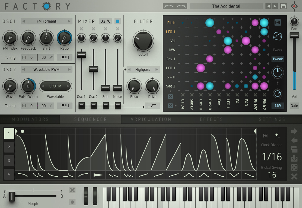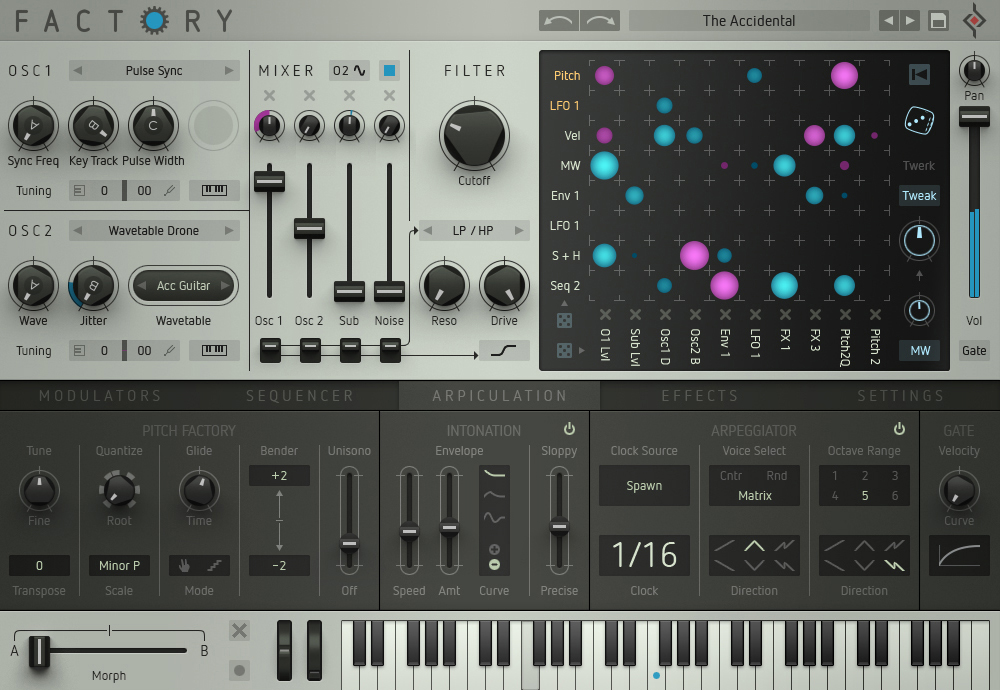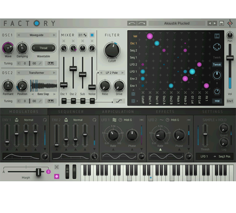 Factory is a modular synthesizer that blends the best of wavetable and sample-based synthesis. Its ability to randomize parameters gives you endless possibilities for generating new sounds, and the polyphonic sequencer allows for intricate patterns and evolving compositions. Factory also incorporates a unique modular approach, enabling users to experiment with routing and modulation in innovative ways. Whether you’re creating complex pads, evolving leads, or experimental textures, Factory offers deep flexibility for sound design. It also includes a powerful sample library, making it a great tool for producers who enjoy working with both synthesized and sampled material. Factory is ideal for musicians and sound designers who value experimentation and randomization in their workflow