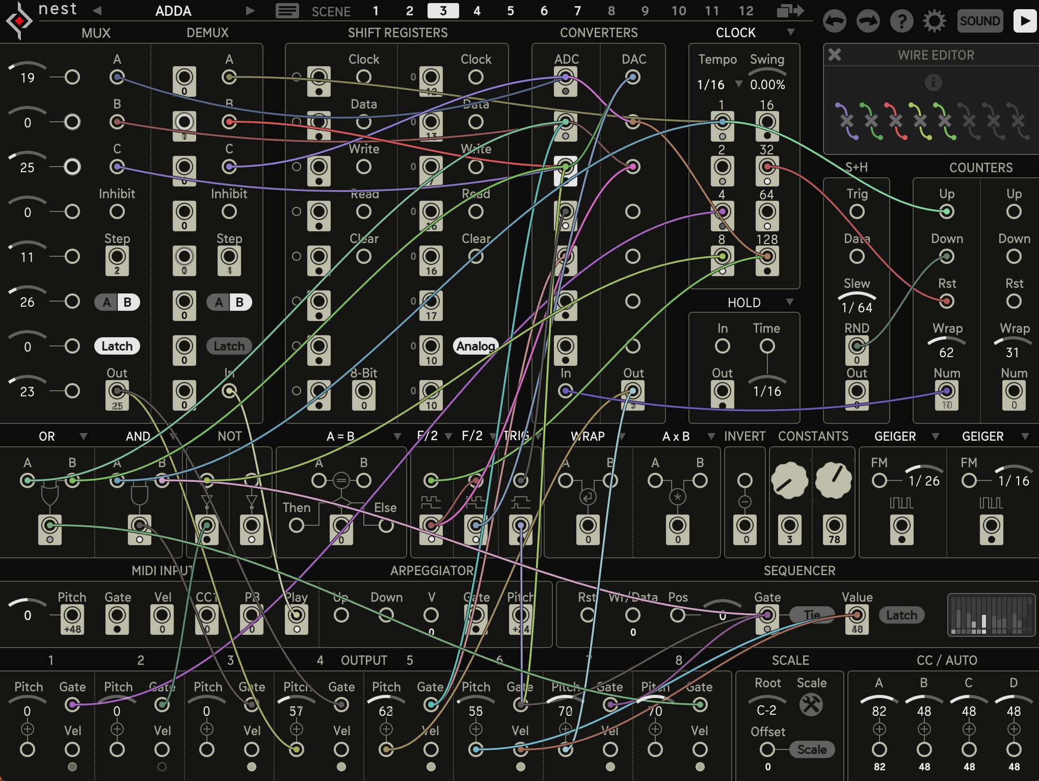 Modular sequencing tool for generating complex patterns and logic-driven musical ideas.
