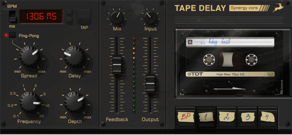 The Antelope Audio Tape Delay packs the true sound of vintage hardware with its beautiful imperfections, analog color, and flexible modern-day controls. This delay tool will add the much-desired space and depth to instruments, voices, and any source signal. Whether you are using Tape Delay during writing or production sessions, you can lock the delay to the BPM of your project or control the delay manually – in milliseconds or by using the Tap button. If you are after an even wider delay effect, experiment with the Ping-Pong mode. Tape Delay features four switchable tape types allowing you to pick the most suitable vintage color for the instrument or track you’re applying the plugin.