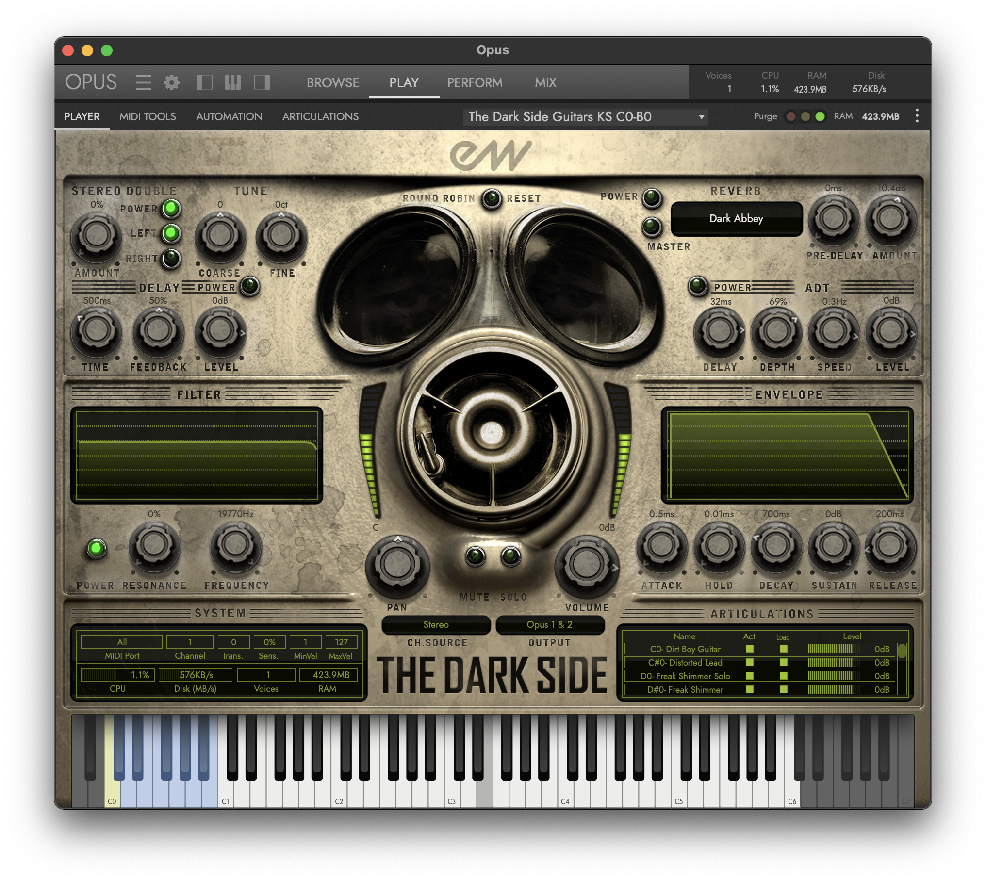 THE DARK SIDE distorted & mangled instruments are designed to stand out in a mix & to disturb the senses. With today`s brick-wall limiting, distorted instruments may be the only production trick left to highlight instruments, a successful technique used often by Radiohead, Muse, Nine Inch Nails, etc.THE DARK SIDE includes a vast, 40 Gigabyte collection, including dark & eerie instruments & highly processed drums & percussion, basses, guitars, ethnic, keyboard, strings, effected instruments, all organized into instrumental groups so you can create complete tracks.Features:Produced by multiple Award-Winning producer DOUG ROGERS & Grammy Award-Winning producer DAVID FRIDMANN (MGMT, Flaming Lips etc.)Many instruments have been purposely & skillfully mangled, distorted & effected out of all recognition (plus a selection of dark & eerie instruments).Easy to use browser displays all of your instruments. Interface automatically changes to display current instrument.Included are 40GBs of highly processed drums percussion, basses, guitars, ethnic, keyboard, strings, FX instruments & sounds, all organized into instrumental groups