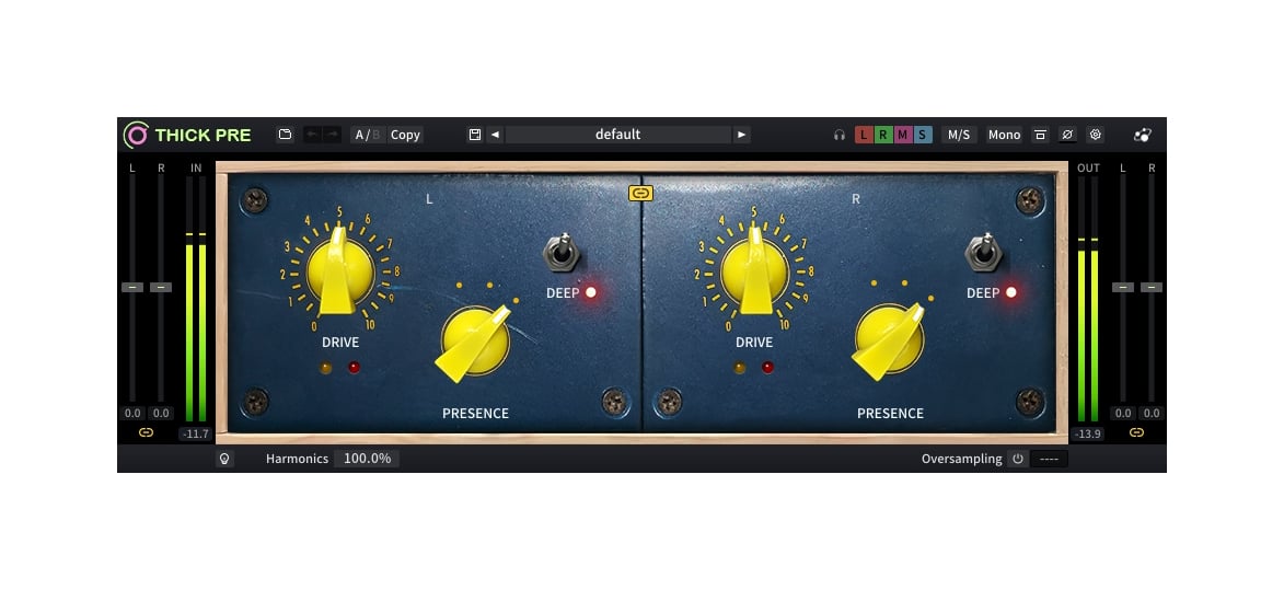 Thick Pre AI is inspired by a legendary vintage-style preamp, that delivers a thick, warm, and smooth sound. Thick Pre AI’s unique ‘Deep’ switch can make your sound even larger and thicker!