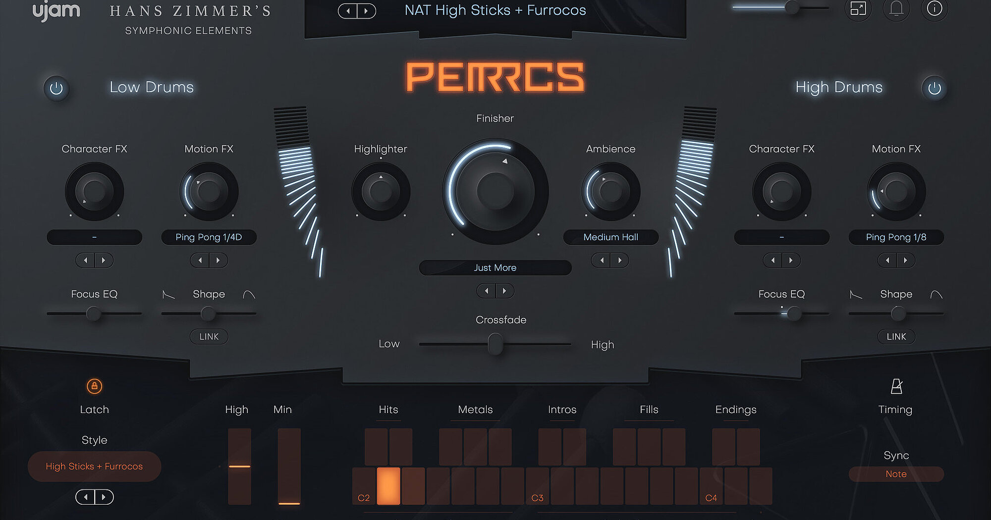 PERRCS is a cutting-edge orchestral percussion instrument designed to deliver emotion, motion, and power in every performance. Sourced from Hans Zimmer’s vault and curated for film, TV, and game scoring, PERRCS features a world-class collection of percussion sounds — from deep drums and rimshots to shakers, sticks, and anvils — all recorded with exquisite detail and dynamic range. Its intuitive low and high layer control allows users to blend or separate frequency ranges for expressive shaping, while the built-in Character, Motion FX, and EQ tools provide deep customization. With 74 rhythm styles and 17 phrase types — including intros, fills, and hits — PERRCS makes it easy to build tempo-synced, evolving percussion parts using its Phrase Engine. Beyond traditional scoring, the Sound Design Section offers 74 Finisher multi-effect modes and 29 ambient treatments, letting you morph natural performances into modern, cinematic textures. Whether you’re scoring a tense thriller or crafting ambient cues, PERRCS gives you the flexibility, clarity, and cinematic punch to make your percussion unforgettable.