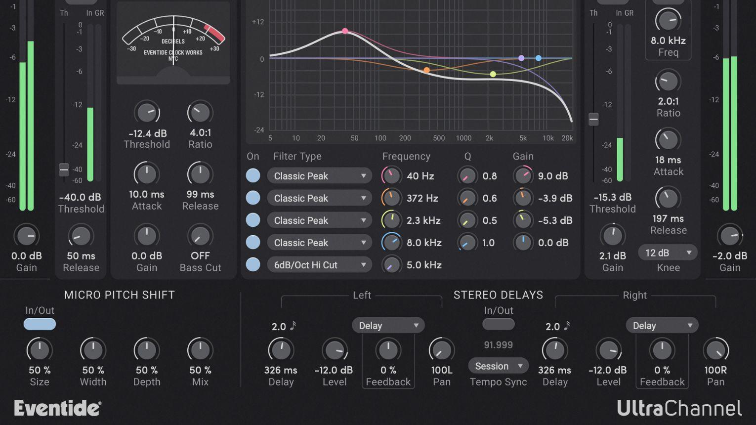 Transform Your Mixes withThree Essential Production ToolsDesigned as the ultimate toolset for producers, engineers, and sound designers, the Ultra Essentials Bundle features three of our most powerful plug-ins: UltraChannel, UltraReverb, and UltraTap. Whether you are mixing or tracking a record, live sound, or post-production, our Ultra Essentials will not only make everyday tasks easier but fire your imagination.The bundle comes with more than 600 presets across the three plug-ins, many designed by Eventide artists including Andrew Scheps, Chris Carter, Richard Devine, Sasha, ROCASound, Brian Montgomery, Matt Lange, and many more. Valued at over $500 if purchased separately, the Ultra Essentials Bundle is the most affordable way to own Eventide’s award-winning tools.