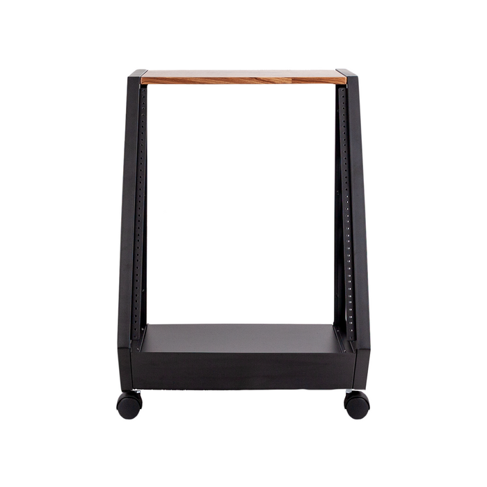 13U Rackmount case with wooden finish and angled, ergonomic design.
