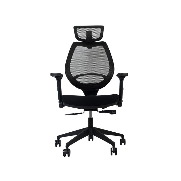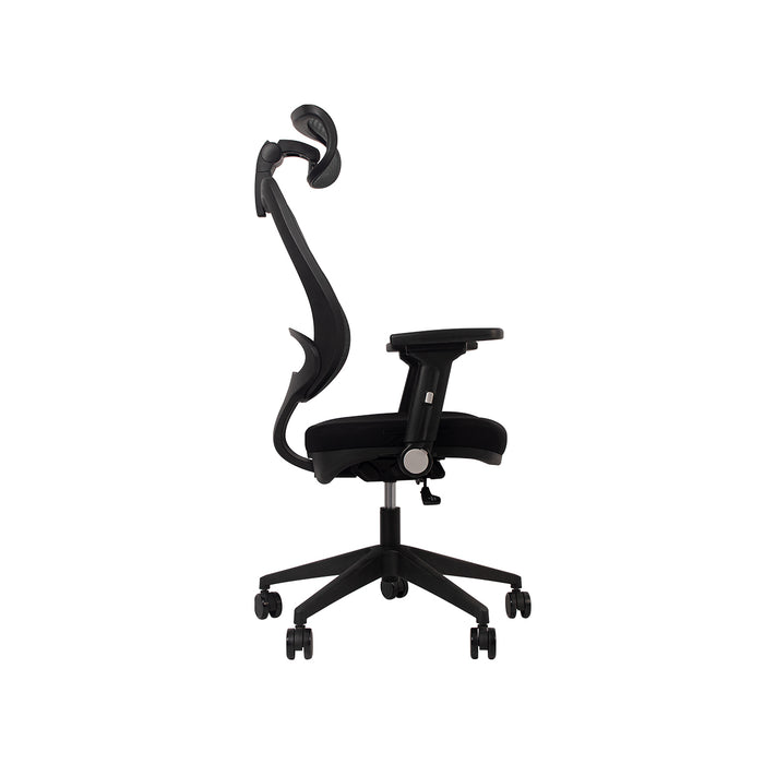 Foam seat studio chair with full back support and foldable armrests.