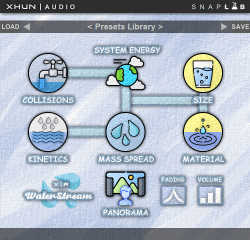 Naturally born for music, live events, film, tv and entertainment productions, WaterStream is based on a complex and powerful physically accurate particles collision engine – it does not use samples at all, sound and fluid dynamics are actually real-time generated.The whole procedural audio engine can be manually controlled or automated: with WaterStream, generating realistic light rain, waterfalls, downpours, river flow soundscapes and much more is as easy as pressing a single note key.